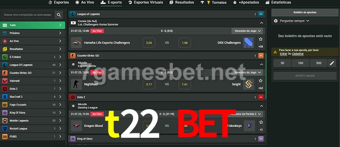 O t22 bet oferece uma grande seleção de opções de apostas em e-sports com probabilidades competitivas